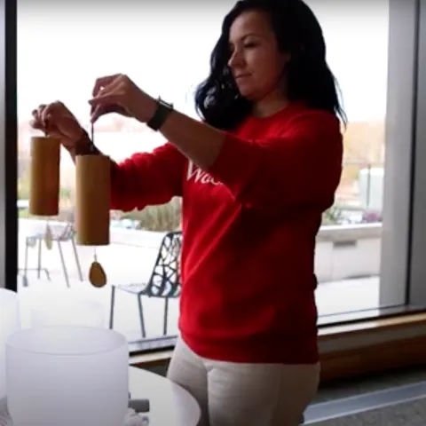 Diana Parra Perez on HEC-TV: The Healing Power of Sound WashU "sound bath" facilitator and mindfulness researcher Diana Parra Perez, PhD, said sound is not only perceived through the ear, but also by the body through vibrations from sound waves that travel through the air. The WashU assistant professor discusses the practices and benefits of sound therapies. For example, can sound therapy with Tibetan singing bowls influence brain chemistry, having a powerful effect on physical and emotional health? "I also like to tell people to not get hung up on one thing, because there is sound all the time if you really listen," she said. "There's music everywhere, all around us. And it just takes that moment of mindfulness." Diana Parra Perez: The Healing Power of Sound 2.7.25 Share